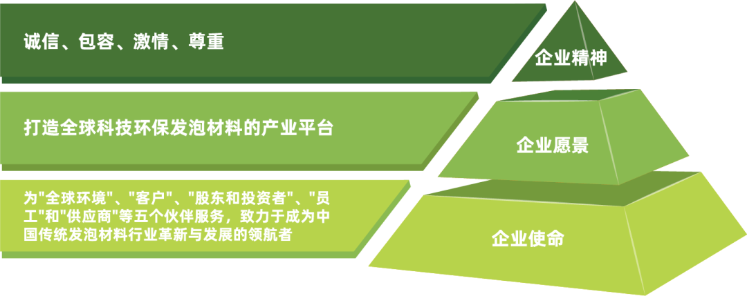 潤陽科技基于“企業(yè)使命”、“企業(yè)愿景”和“企業(yè)精神”等理念體系,以技術先行重點產出環(huán)保價值。目標是集合企業(yè)成員力量共同應對環(huán)境問題,積極為全球市場提供安全、健康的環(huán)保發(fā)泡材料,從而成為具有標志性的可持續(xù)發(fā)展型企業(yè)。