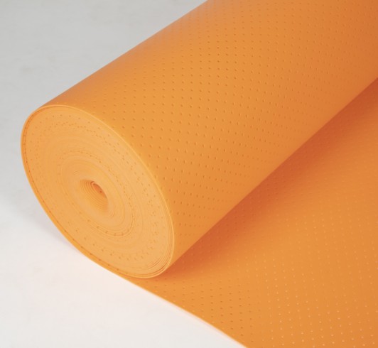特殊的壓紋可有效的降低聲音分貝,起到良好的隔音效果;在施工的過程中地板膜能有效防止鋪設地板時地板材移位的現象,起到良好的止滑作用。